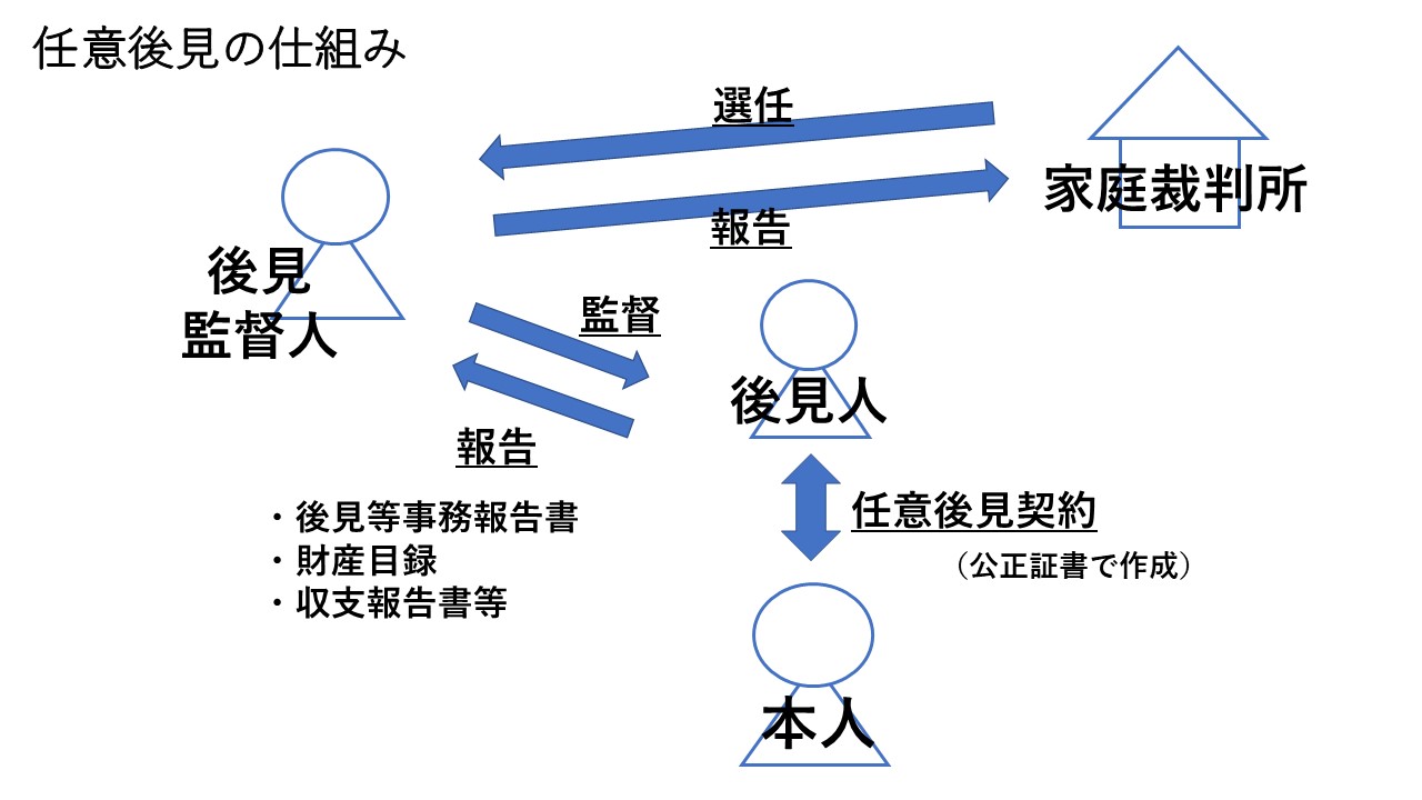 その上で、本人の判断能力が低下してきたら、任意後見契約を発効させるという流れになります。