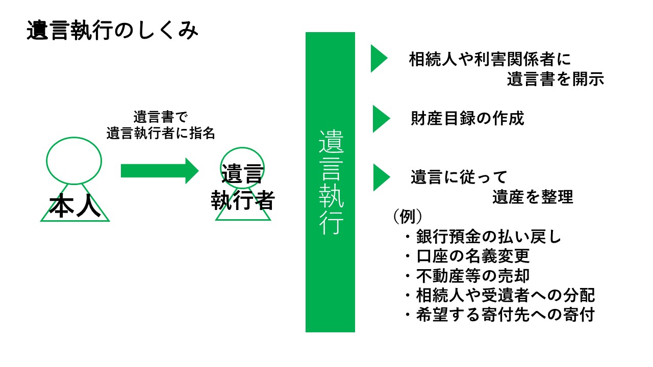 そして、自分の遺言を速やかに確実に実現してもらうために、その遺言書の中で遺言執行者を定めておきましょう。
