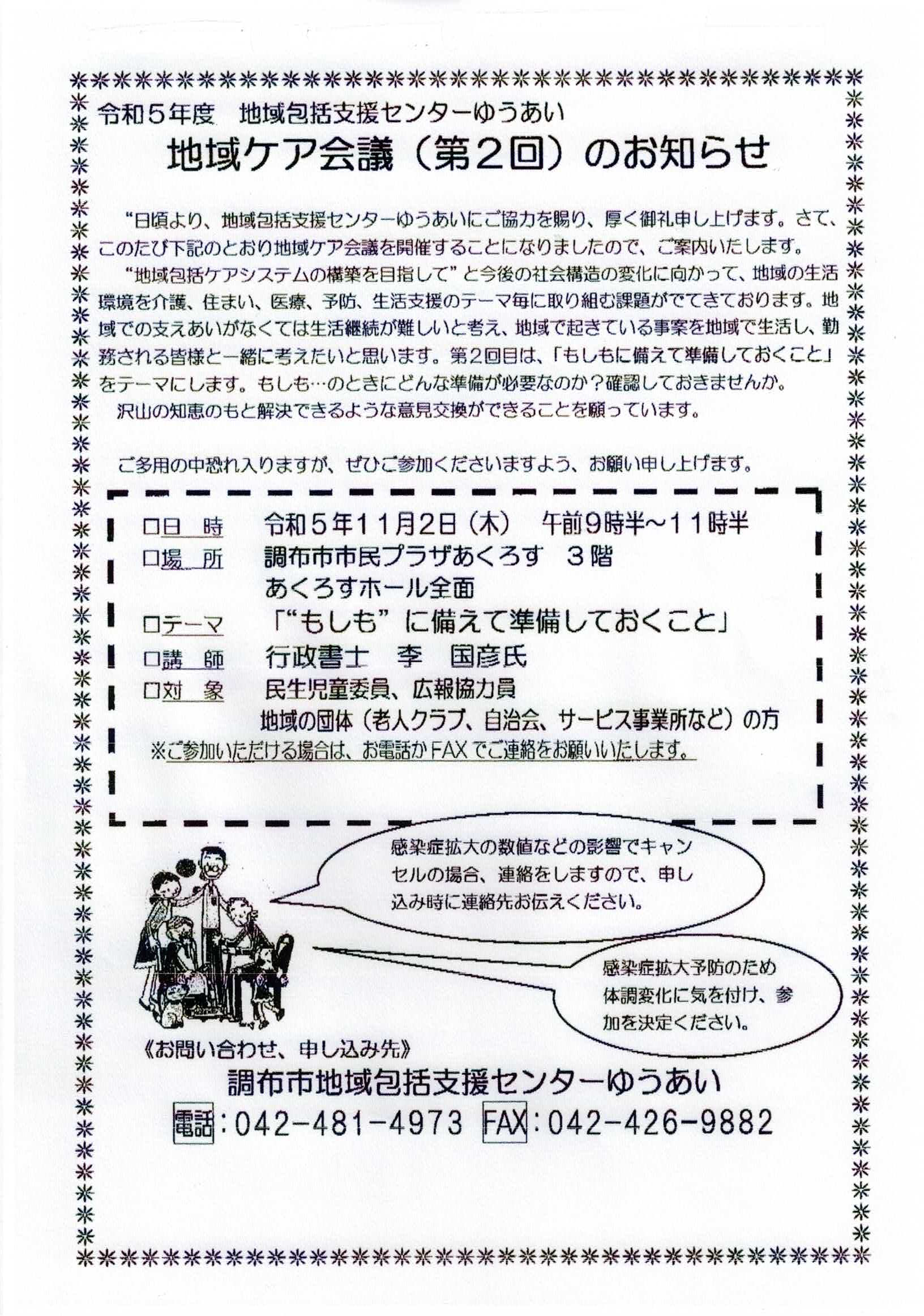 参加していただいた皆様、会場をお貸しいただきました調布メモリードホールの皆様、ご協力いただきました地域包括支援センター仙川のスタッフをはじめとした皆様、本当にありがとうございました。